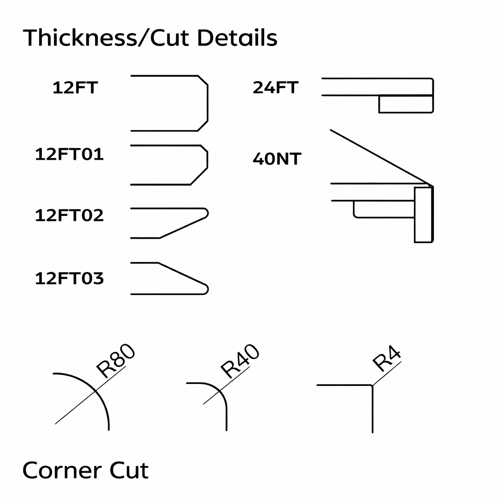 Please refer to the specification sheet for detailed information on each item, including its cross sections and dimensions.