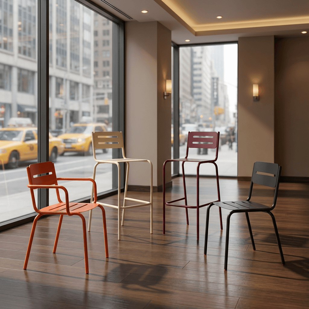 Sleek and modern, the ALTO Chair pairs clean metal lines with a perforated backrest for comfort and visual appeal. Built with durable, weather-resistant finishes, it offers everyday comfort, easy maintenance, and reliable performance for indoor spaces, patios, cafés, and commercial environments.